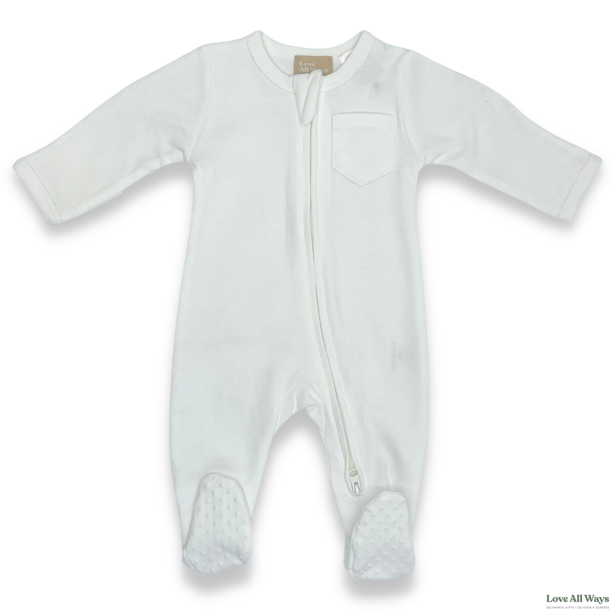 Our breathable, 100% Organic Cotton Jersey Romper is gentle, calming and natural. It's super soft to the touch, fits neatly and offers long sleeves with fold over cuffs to keep fingers warm whilst also protecting against scratches. The rompers are available in sizes: New Born and 0 - 3 months:
