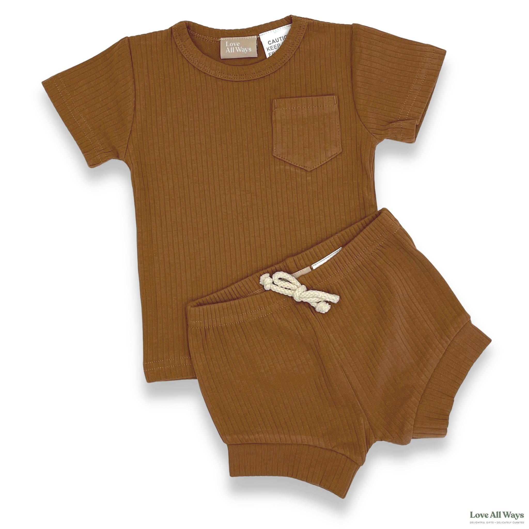 Orders take 1-2 Business days to be sent out.The coolest looking set for this Summer! Look and feel great wherever you go in this 2 piece short sleeve lounge set. The fabric used for our Ribbed clothing is GOTS certified Organic Cotton that has soft hand feel, breathable, superior quality that offers comfort and flexibility. Mixed with the cotton is 5% Spandex which has amazing stretch capabilities and assists with a seamless change. The ribbed design creates visually appealing lines, is soft on baby's skin and is an everyday, premium look product. The details are:
