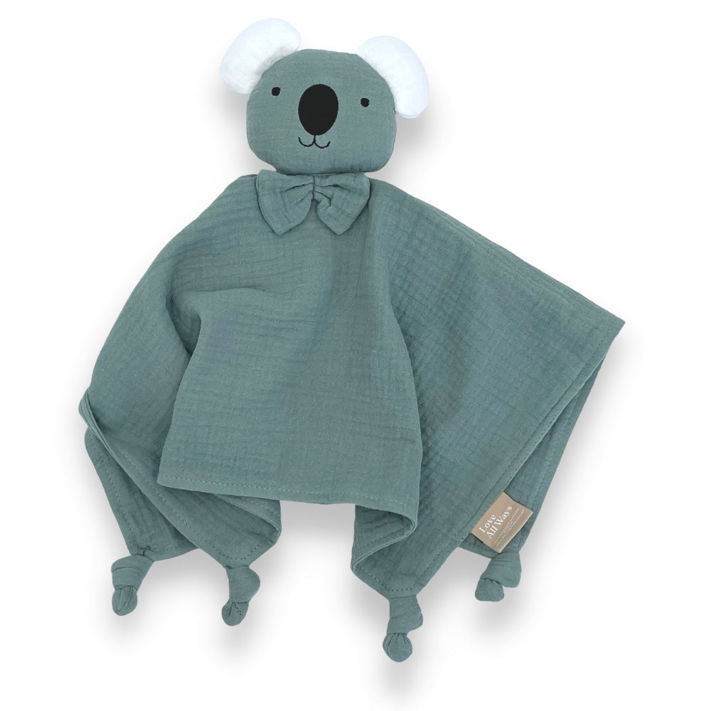 Orders take 1-2 Business days to be sent out.Our Koala comforter is made from premium quality organic cotton that is safe for babies to play with, hug and carry around (everywhere). The comforter is designed to make a baby happy and offer a sense of comfort. The cute bunny with decorative bowtie design is sure to become someone's best friend. The 100% double layered organic cotton is super soft, gentle to touch and perfect for cuddles, details are: