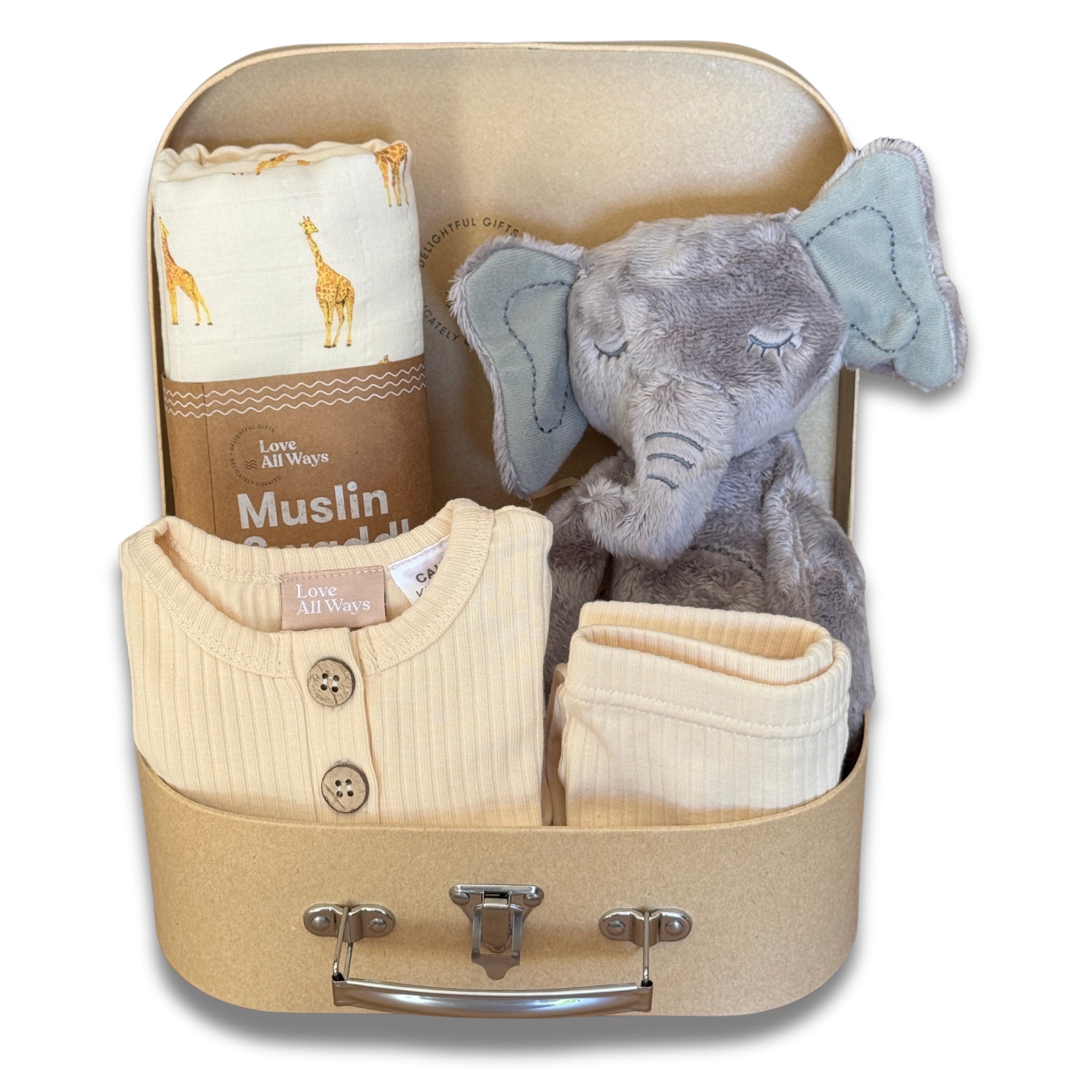 With the chilly winter days approaching, there's nothing better than cuddling up in cozy loungewear. Our organic cotton hamper is the perfect gift to keep your little one warm and snug during the colder months. Crafted with love and care, each item in this hamper is designed to provide comfort and warmth while also adding a touch of style to your baby's wardrobe. The hamper contains: